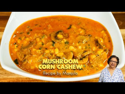 Mushroom Corn Cashew Curry Recipe by Manjula - Corn Mushroom - View full recipe at http://www.manjulaskitchen.com/mushroom-corn-cashew-curry/ Learn how to make Mushroom Corn Cashew Curry Recipe by Manjula If you ...