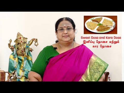 Recipe 64: Vella Dosa and Kaara Dosa - Vella Dosai - A very traditional Tanjore Dish of Dosa types (Sweet and Spicy) made during Karthigai Month of the Tamil Calender, shown in an easy to make way by Mrs.