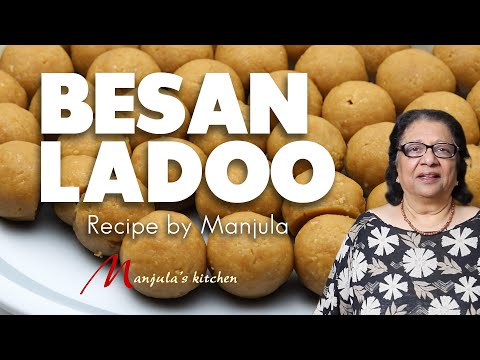 Besan Ladoo Recipe by Manjula, Indian Sweets - Besan Ladoo Recipe Manjula - View full recipe at http://www.manjulaskitchen.com/basen-ladoo/ Ingredients: 1 1/2 cups gram flour (basen) 4 tablespoons semolina flour (fine sooji) 1/2 cup ...