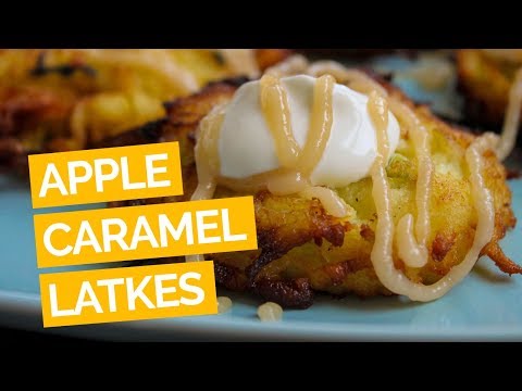 Apple Latke Recipe with Sour Cream, Caramel - Apple Potato Latkes With Cinnamon Sour Cream - How to make latkes. This apple recipe is topped off with tangy sour cream and a homemade Bourbon caramel sauce. 1 pound firm Granny Smith apples (about 2 ...